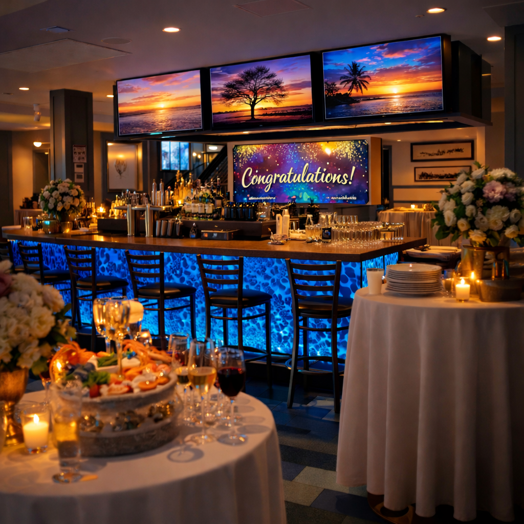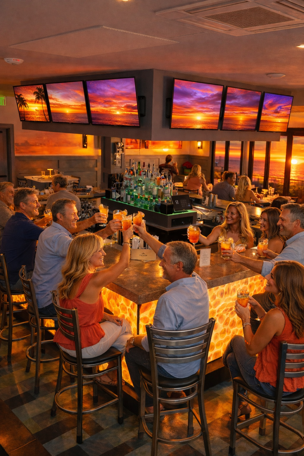 Happy Hour is 7 days a week from noon–6pm at the bar—great drinks, great bites, and the best place to unwind. Perfect for a casual get-together or game time with your crew.